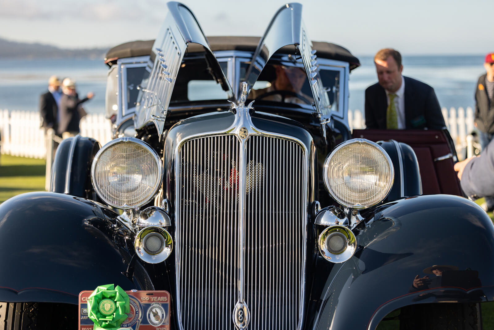 The Chrysler Centennial class focused on Custom Imperials, and two such cars that previously won Best of Show returned to be showcased together; the General William Lyon Family brought their 1931 CG LeBaron Dual Cowl Phaeton, and Sam & Emily Mann brought their 1932 CH Speedster.
