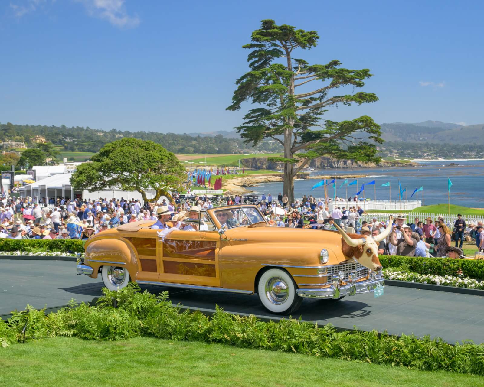 A second Chrysler class focused on the sporting wood-bodied creations that were the delight of active, outdoor-loving car enthusiasts back in the 1940s and remain much-loved today: Town and Country station wagons, sedans, convertibles and coupes. Placing First in Class was the 1942 station wagon of Valerie & Aaron Weiss, with the 1948 convertible of the Academy of Art University in Second, and the long-horned convertible of The Keller Collection, a true fan-favorite, in Third.