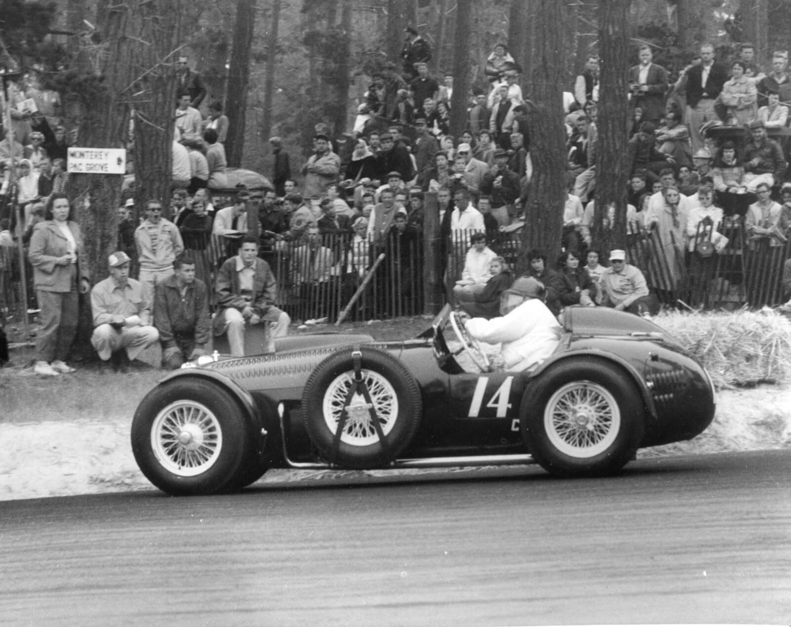 The “Stovebolt Special” — a 1950 HWM fitted with experimental disc brakes and powered by the very first Chevy V8 used in road racing—competed in the very last road race through the tree-lined course in Pebble Beach. Photo Credit: Julian P. Graham / Pebble Beach Compamy Lagorio Archives